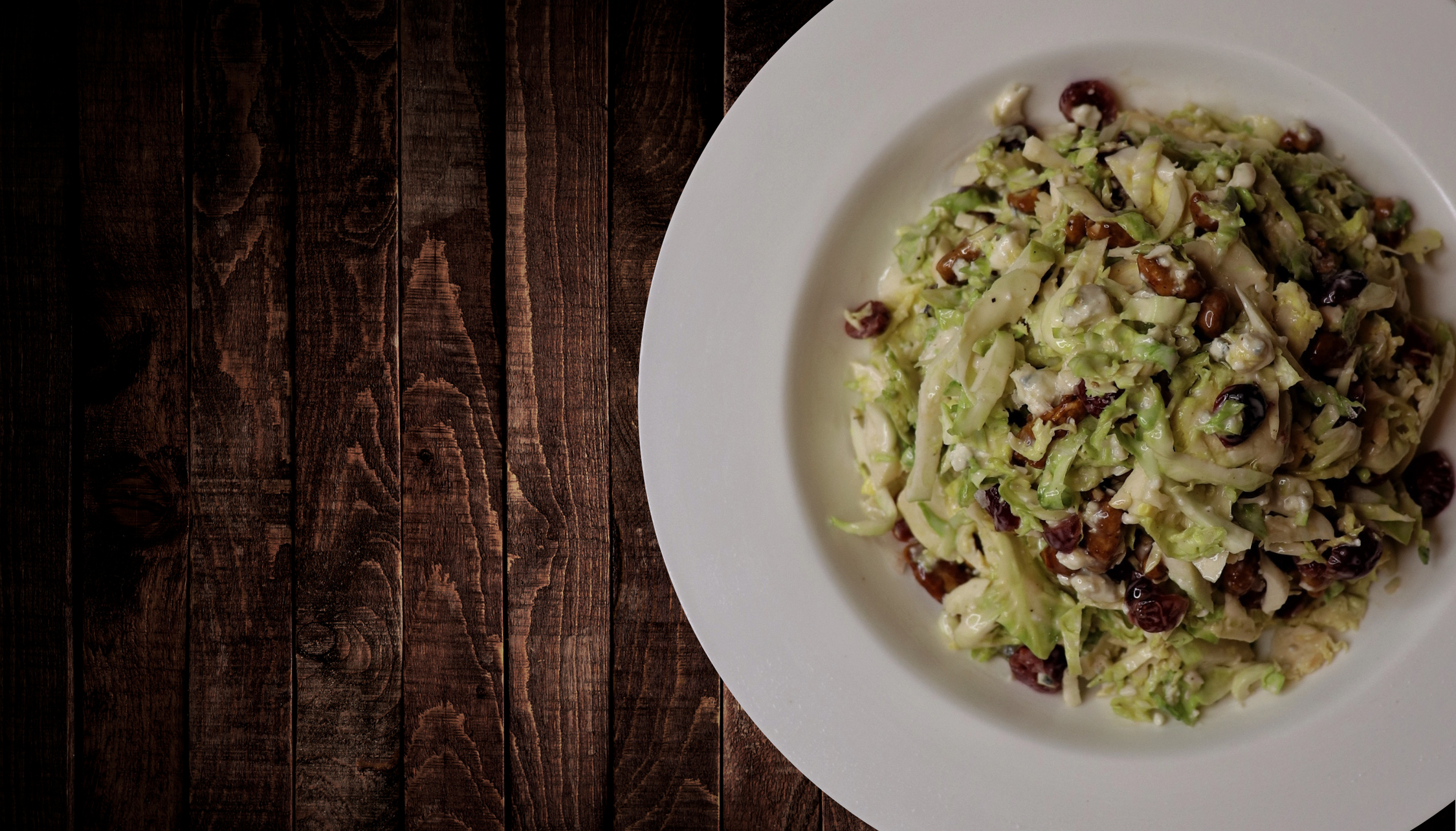 fresh Brussel sprouts, gorgonzola cheese, candied pecans, raisins, cider vinaigrette